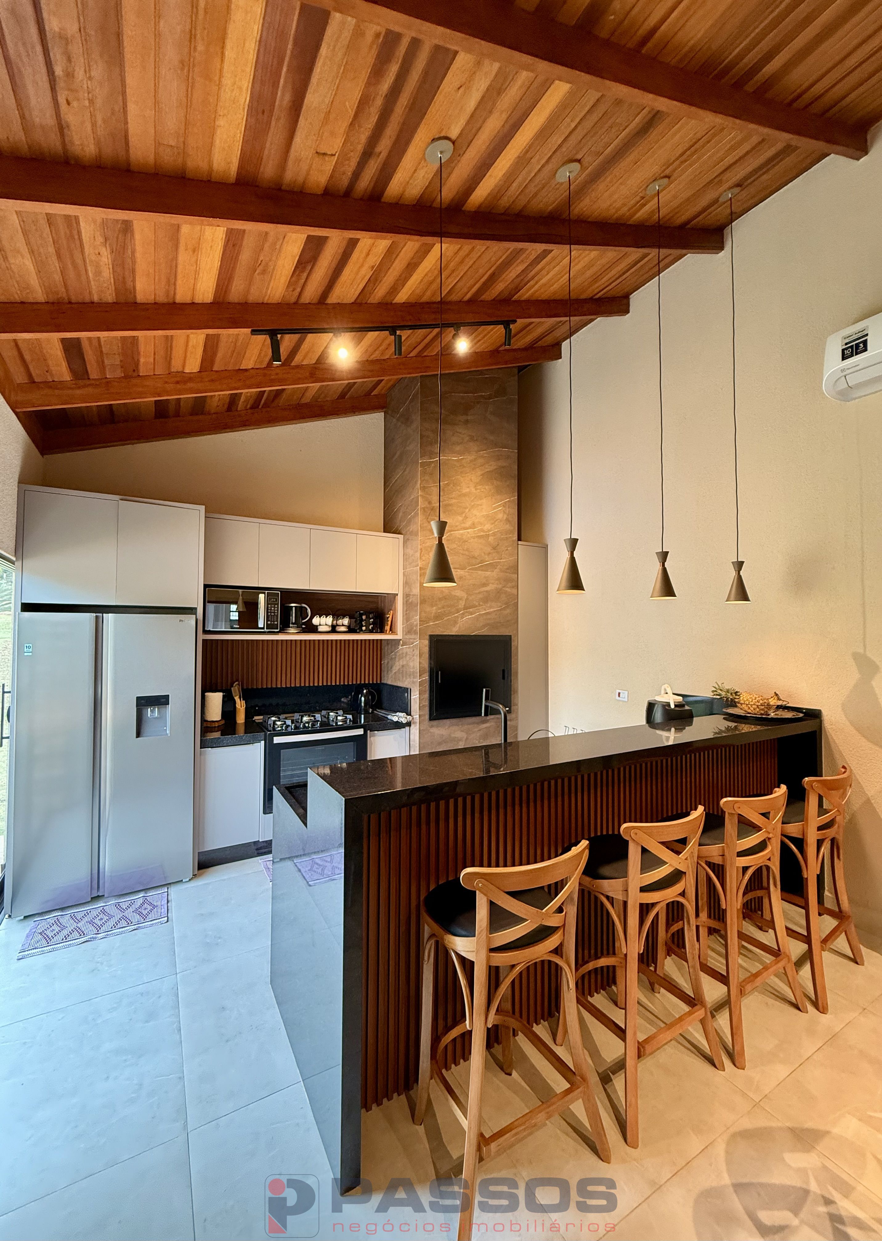- Ilha central com pia ampla, máquina de lavar louças embutida e armários sob medida